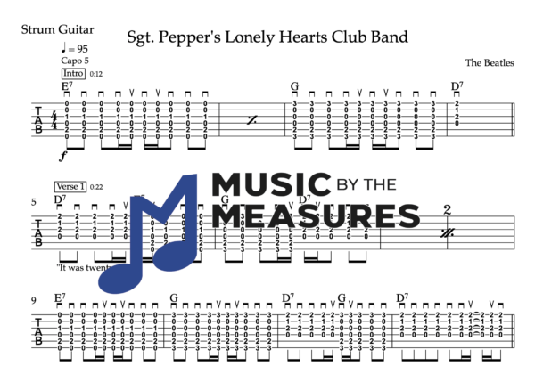 Strum Guitar Tablature for “Sgt. Pepper’s Lonely Hearts Club Band” by The Beatles
