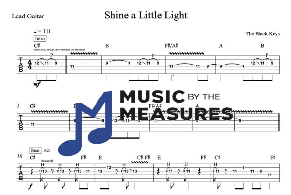 Lead Guitar Tablature for “Shine a Little Light” by The Black Keys