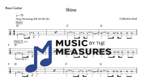 Bass Guitar Tablature for “Shine” by Collective Soul