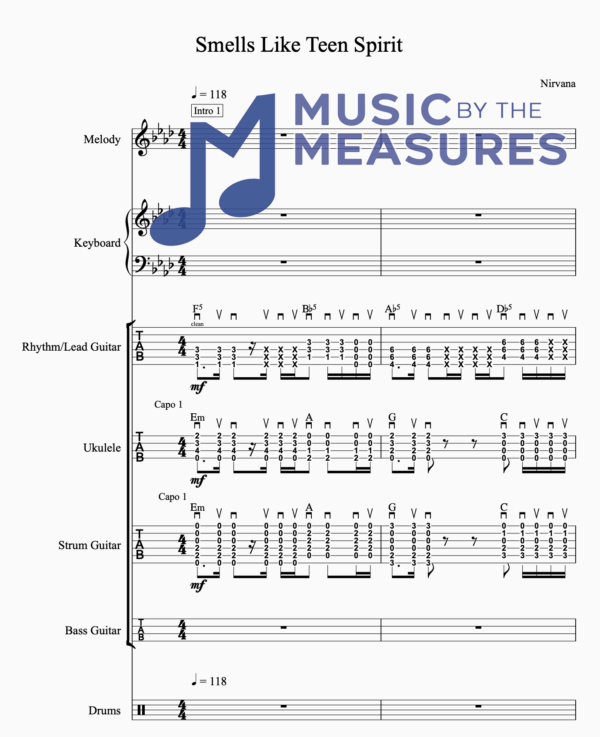 Full Band Sheet Music for “Smells Like Teen Spirit” by Nirvana