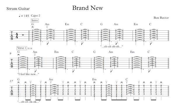 Strum Guitar Tablature for “Brand New” by Ben Rector.