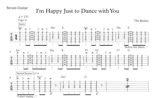 Strum Guitar Tablature for “I’m Happy Just to Dance with You” by The Beatles.