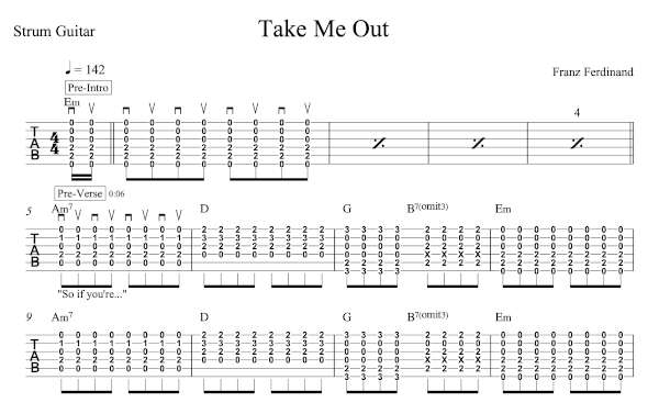 Strum Guitar Tablature for “Take Me Out” by Franz Ferdinand.