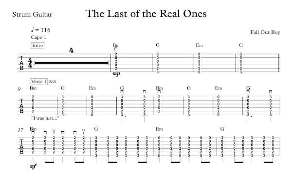 Strum Guitar Tablature for “The Last of the Real Ones” by Fall Out Boy.