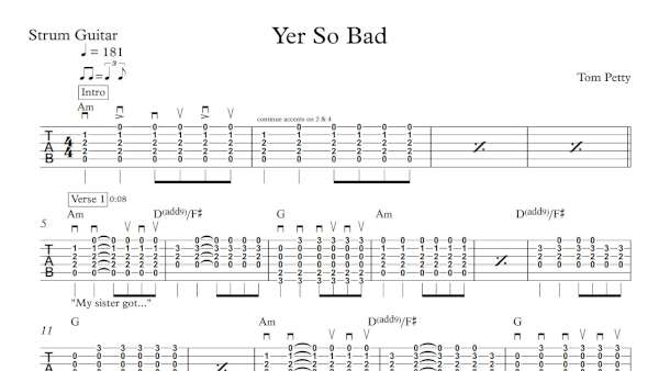 Strum Guitar Tablature for “Yer So Bad” by Tom Petty.
