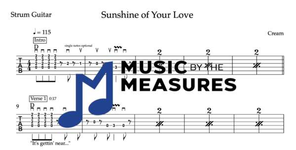 Strum Guitar Tablature for “Sunshine of Your Love” by Cream
