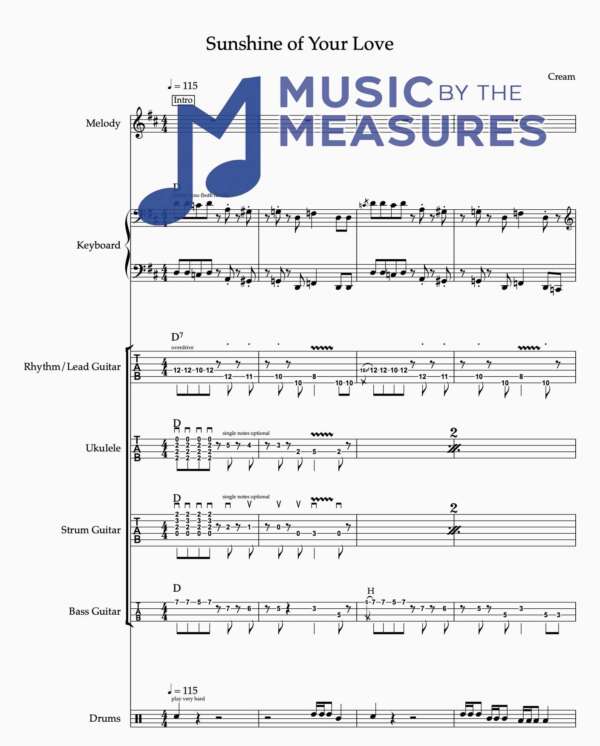Full Band Sheet Music for “Sunshine of Your Love” by Cream