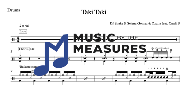 Drum Sheet Music for “Taki Taki” by DJ Snake & Selena Gomez & Ozuna feat. Cardi B