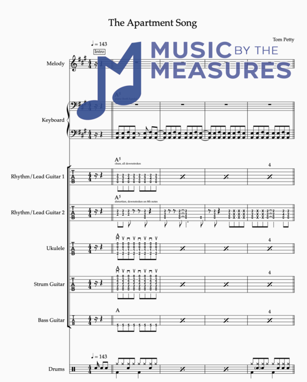 Full Band Sheet Music for “The Apartment Song” by Tom Petty