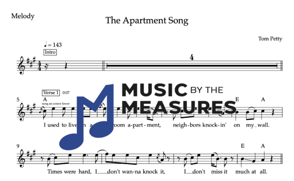 Melody Sheet Music for “The Apartment Song” by Tom Petty