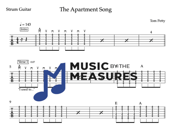 Strum Guitar Tablature for “The Apartment Song” by Tom Petty