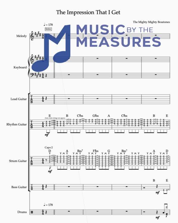 You need to be a member to be able to purchase this tab. Sign up nowFull Band Sheet Music for “The Impression That I Get” by The Mighty Mighty Bosstones