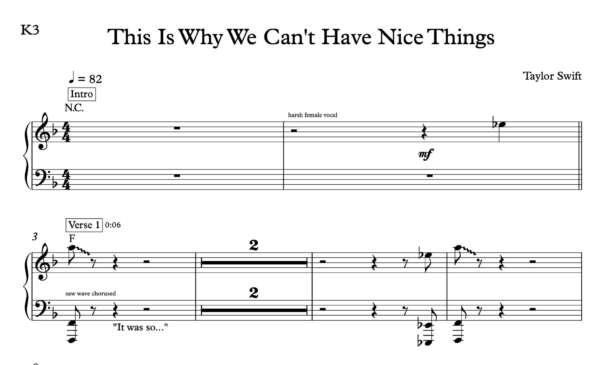 Keyboard Sheet Music for “This is Why We Can’t Have Nice Things” by Taylor Swift