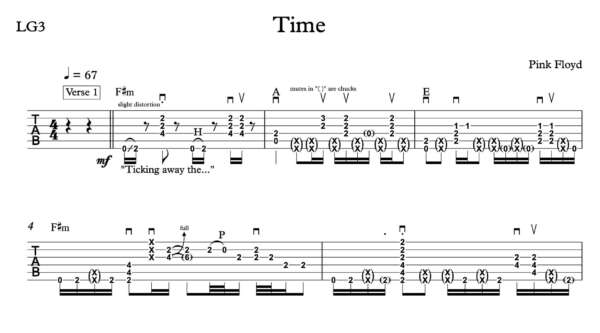 Lead Guitar Tablature for “Time” by Pink Floyd