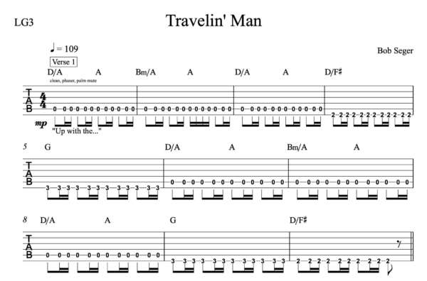 Rhythm Guitar Tablature for “Travelin’ Man” by Bob Seger