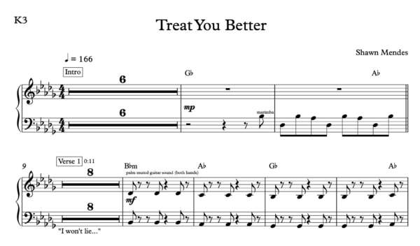Keyboard Sheet Music for “Treat You Better” by Shawn Mendes