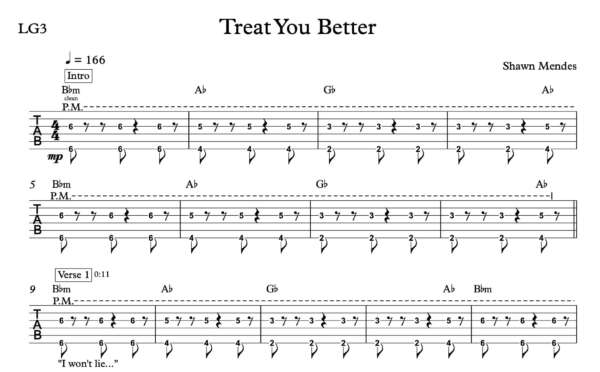 Lead Guitar Tablature for “Treat You Better” by Shawn Mendes