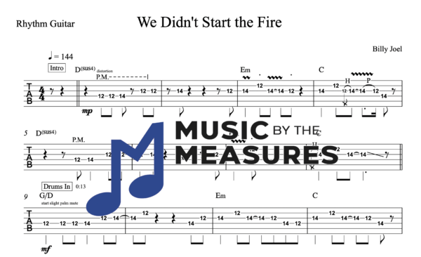 Rhythm Guitar Tablature for “We Didn’t Start the Fire” by Billy Joel