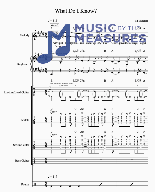Full Band Sheet Music for “What Do I Know” by Ed Sheeran