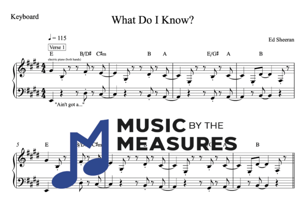 Keyboard Sheet Music for “What Do I Know” by Ed Sheeran