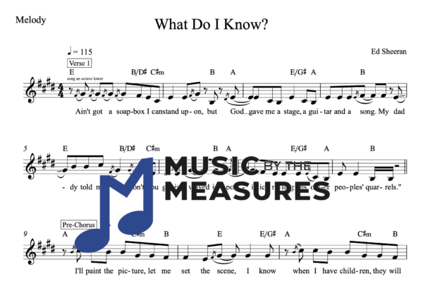 Melody Sheet Music for “What Do I Know” by Ed Sheeran