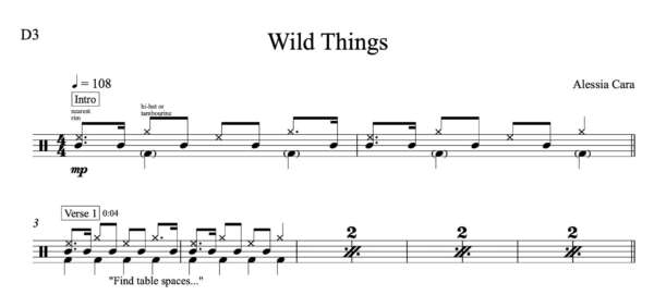 Drum Sheet Music for “Wild Things” by Alessia Cara