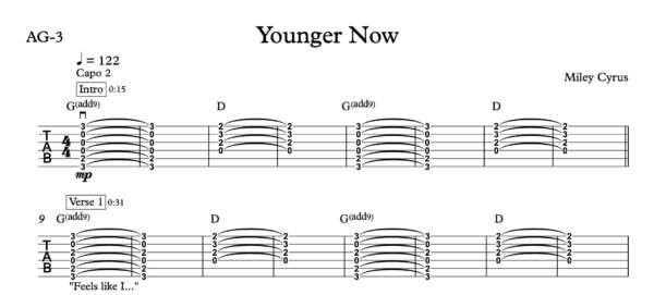 Strum Guitar Tablature for “Younger Now” by Miley Cyrus
