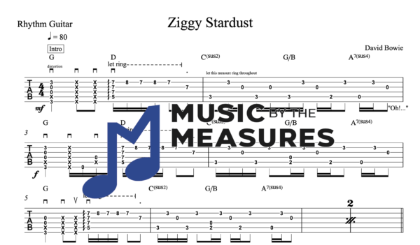 Rhythm Guitar Tablature for “Ziggy Stardust” by David Bowie